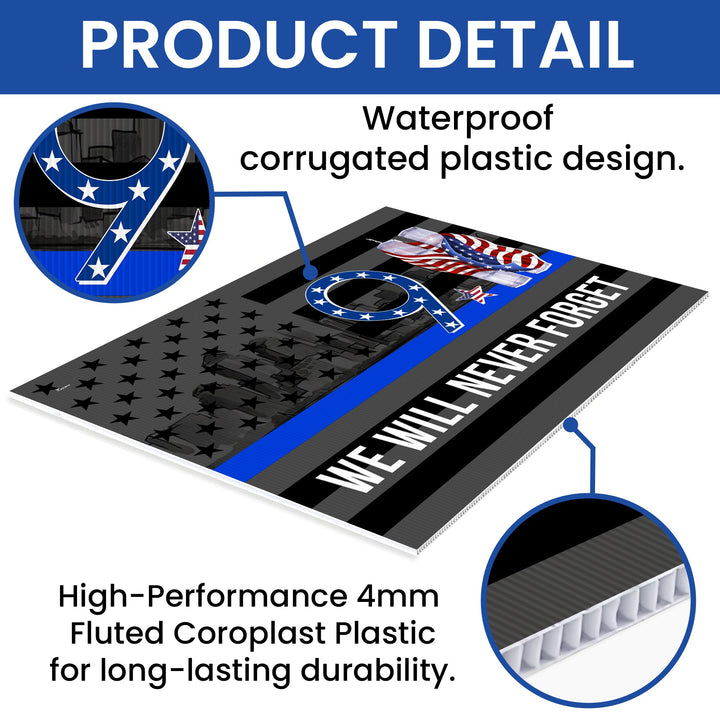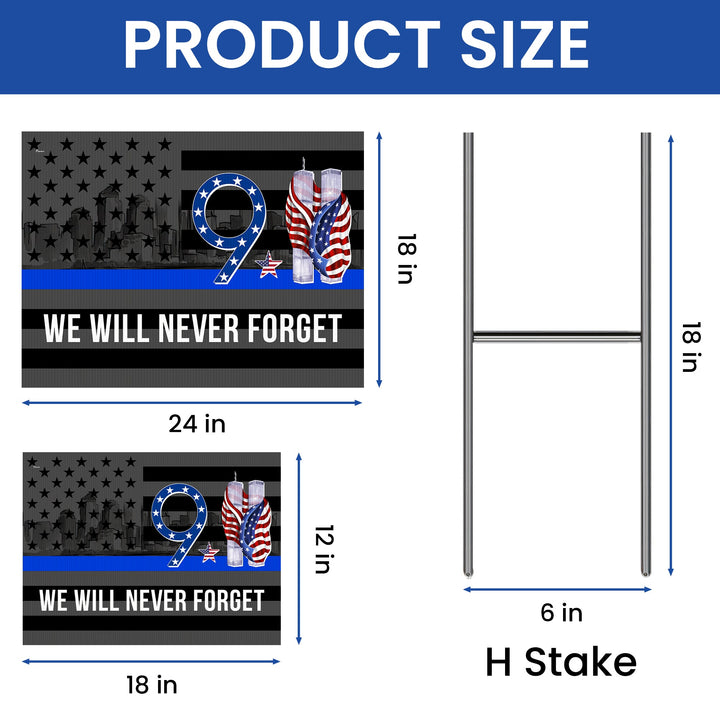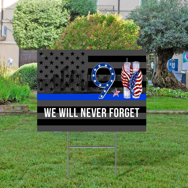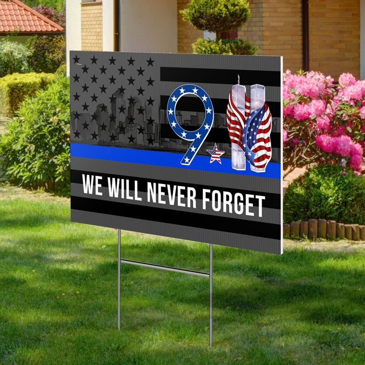 911 Patriot Day Never Forget Flag Thin Blue Line Yard Sign TPT1075YSn