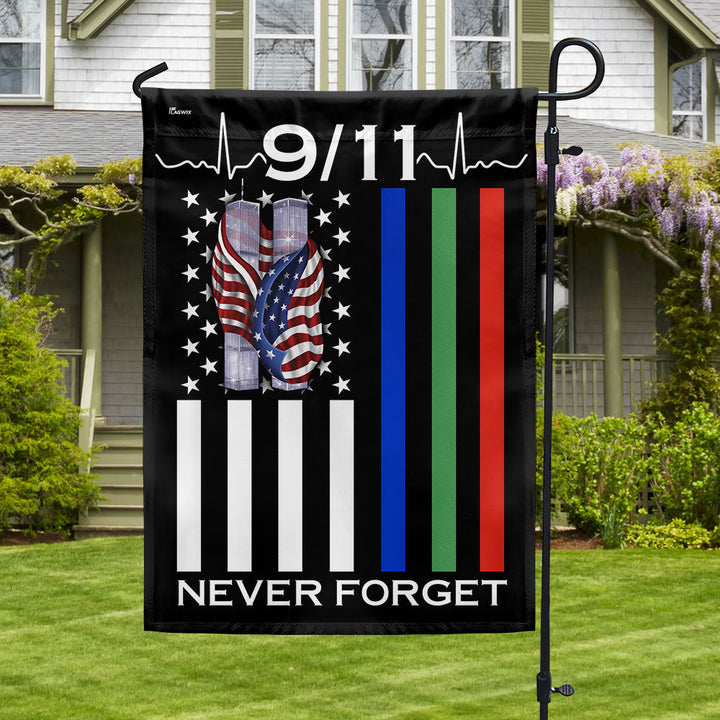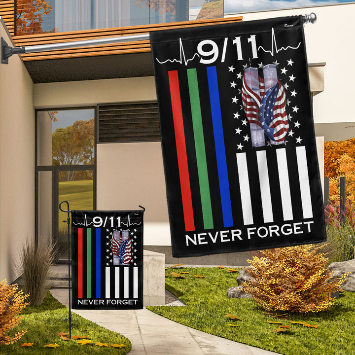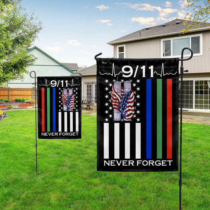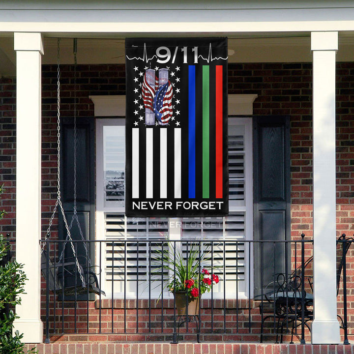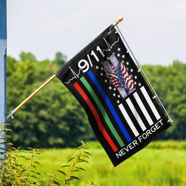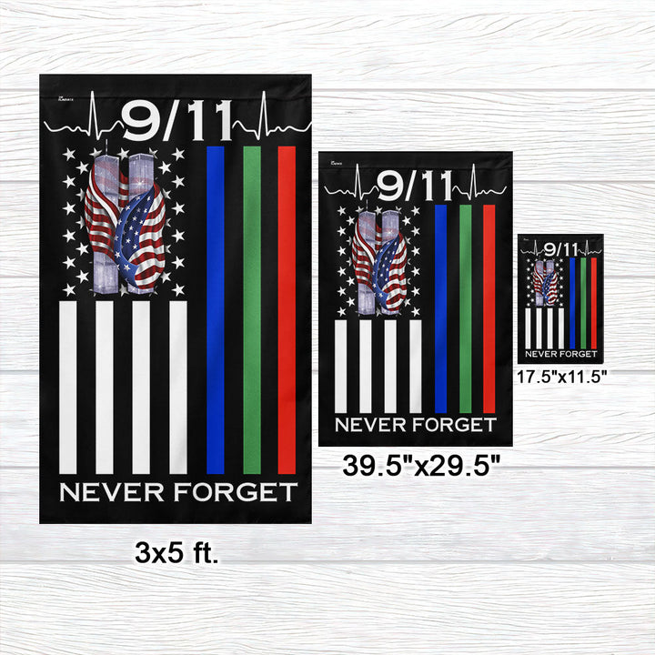 911 Patriot Day Thin Blue Red Green Flag, September 11 Never Forget Police Firefighter Military Flag TQN1413F