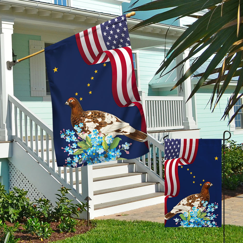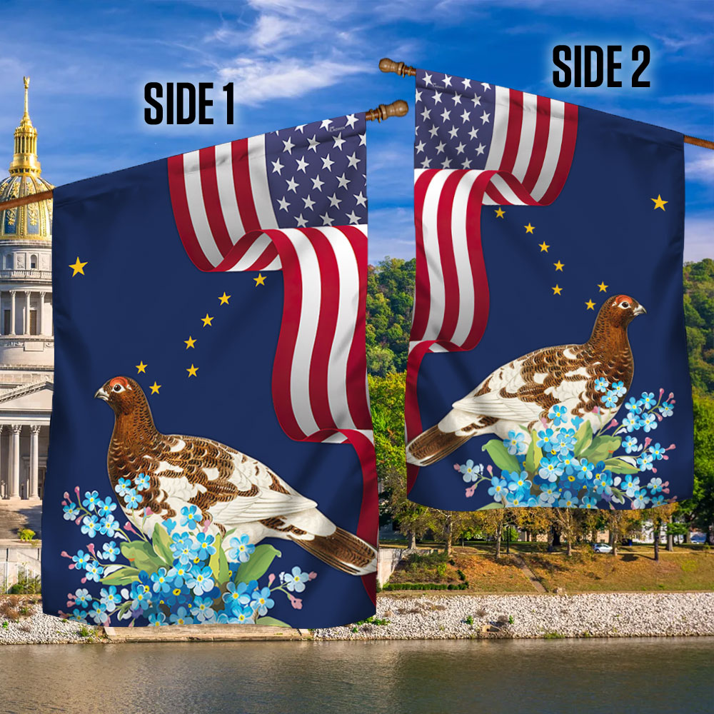 Alaska State Willow Ptarmigan Bird and Forget-Me-Not Flower Flag MLN1141Fv10