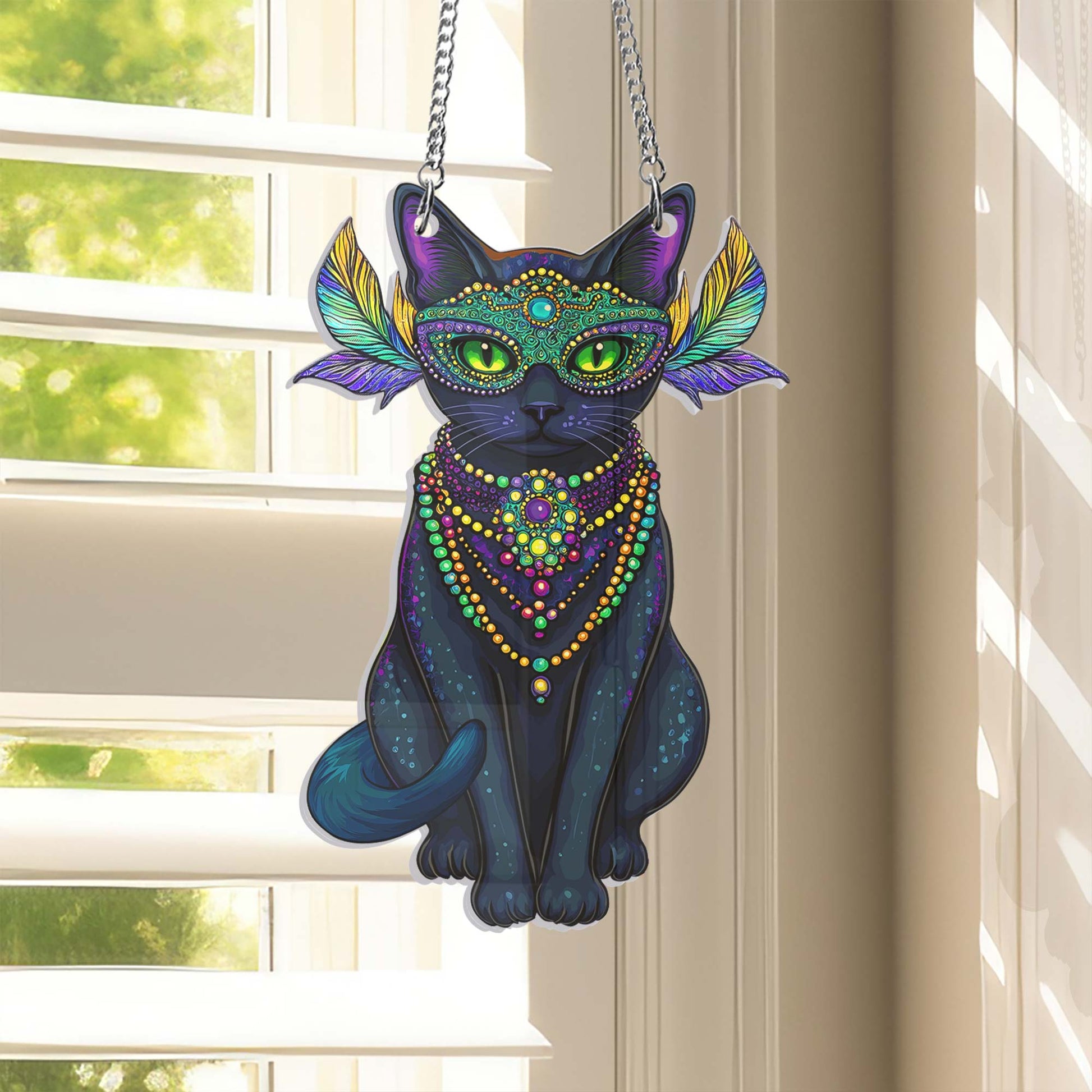 Black Cat Mardi Gras Suncatcher Acrylic Hanging Sign TQN4664AS