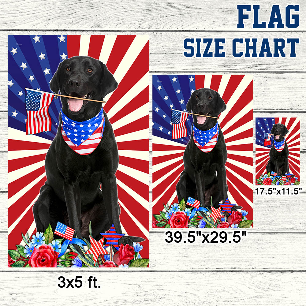 Make this Independence Day flag part of your celebration. Fly your colors proudly—with your loyal Black Lab leading the way!