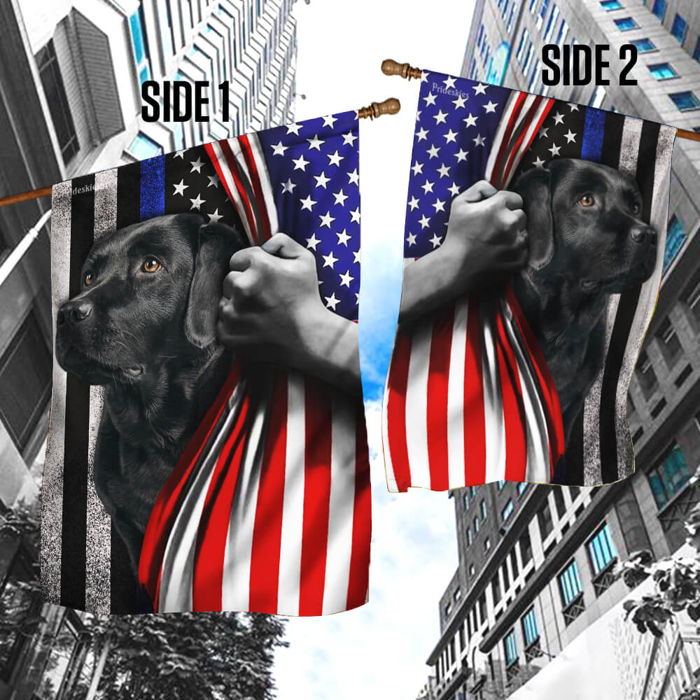 Black Labrador. The Thin Blue Line America US Flag
