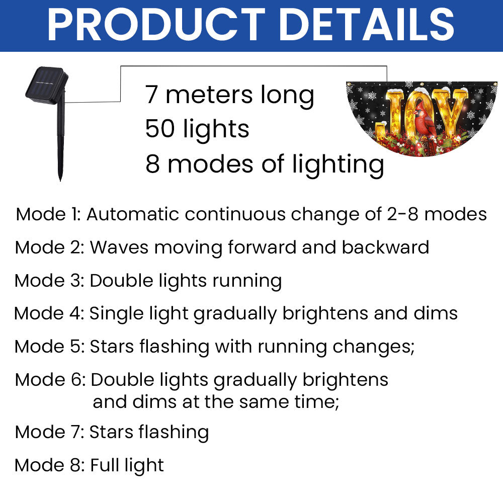 8 Light Modes - The solar led lights outdoor waterproof create different aesthetic atmosphere with various light modes. You can choose from 8 different lighting modes and speeds to enhance the festive ambience, making your Christmas colorful!