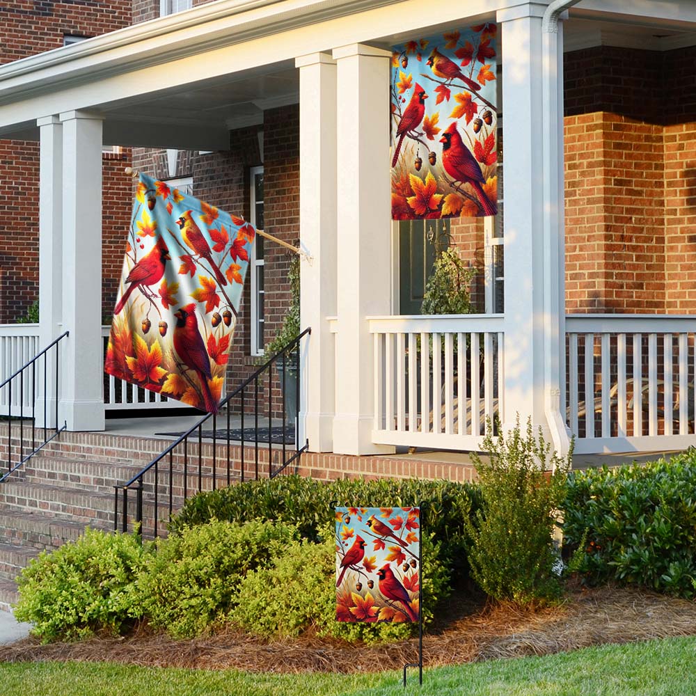 Cardinal Fall Autumn Leaves Welcome Fall Flag MLN3685F