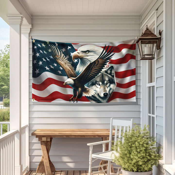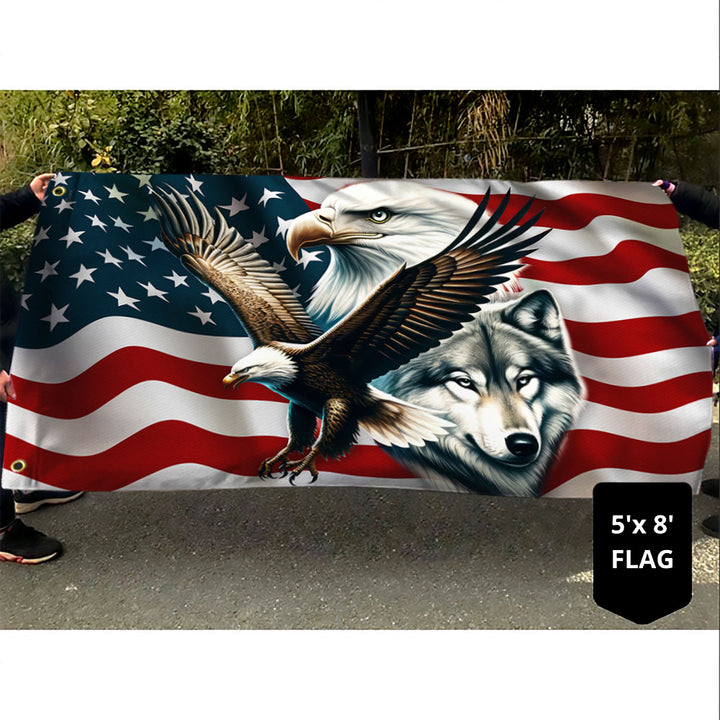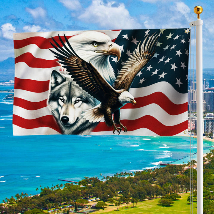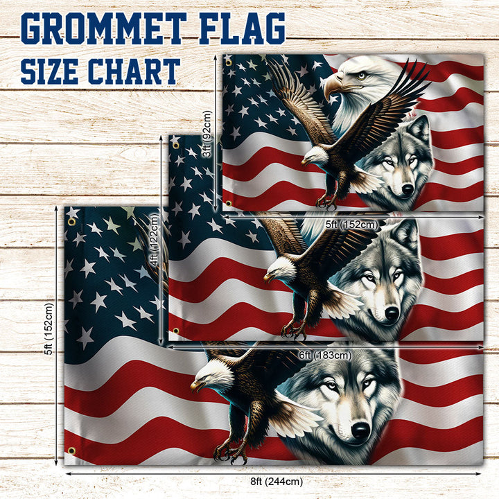 Eagle and Wolf American Grommet Flag TPT1610GF