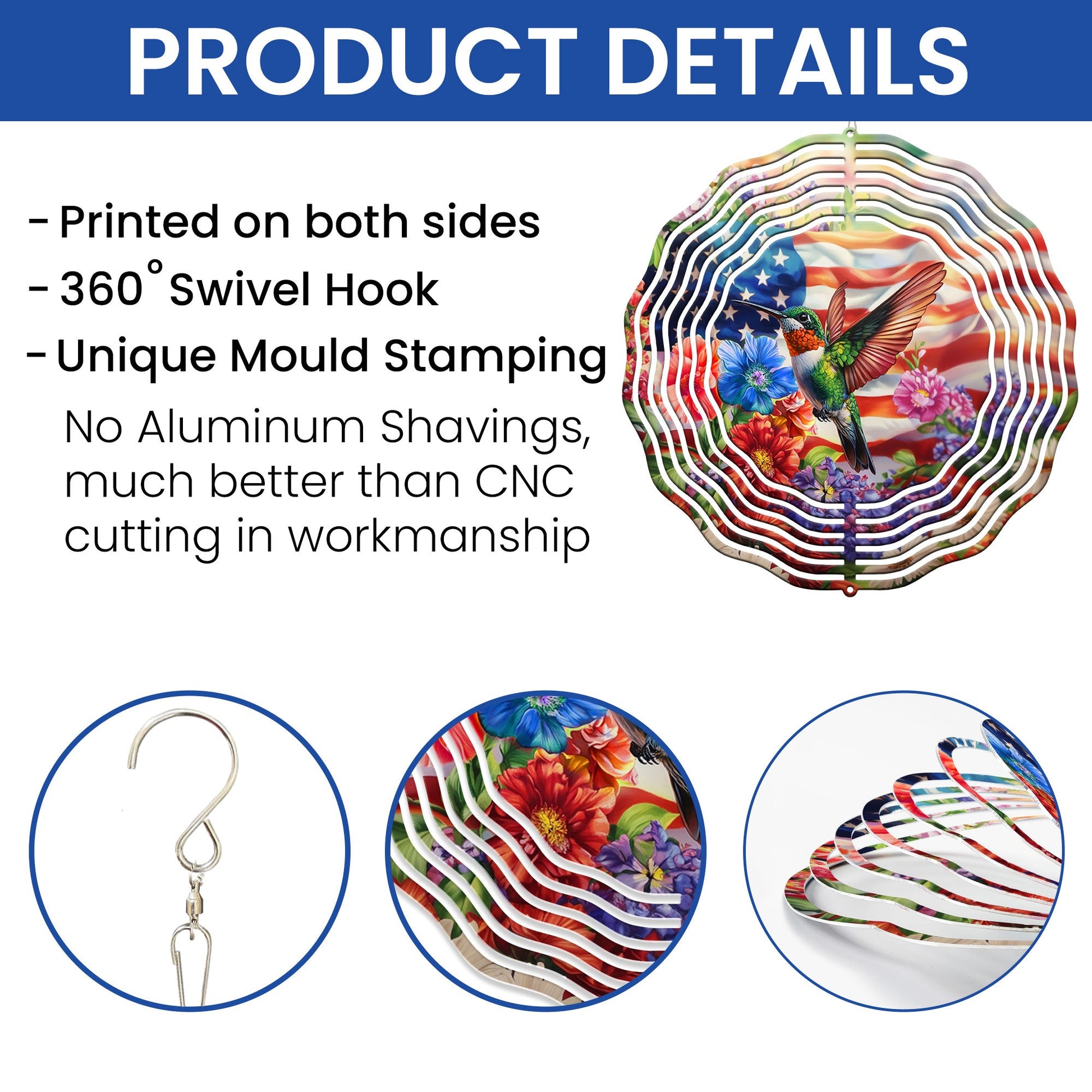 • Customizable & Built to Last: With its sturdy construction and easy installation, this Wind Spinner is designed to endure the elements while enhancing your outdoor decor. It's not just a decoration—it's a source of relaxation, creating a tranquil atmosphere.