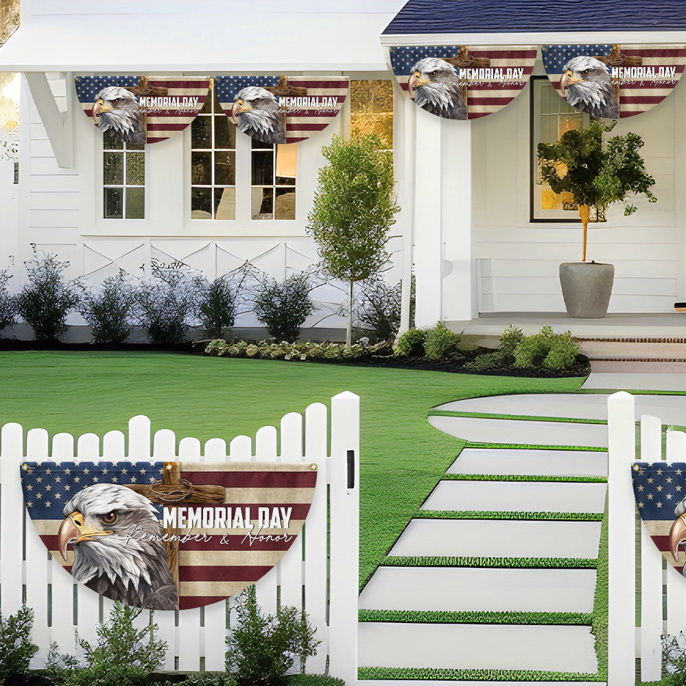 Memorial Day Eagle Christian Cross Remember & Honor Non-Pleated Fan Flag MLN5532PMN