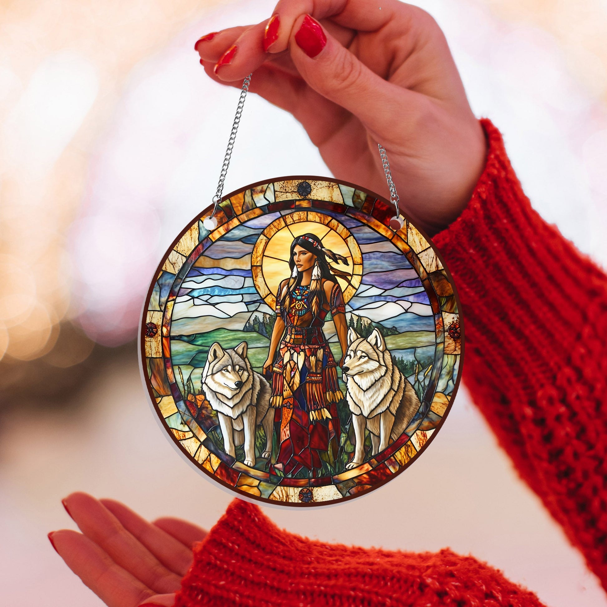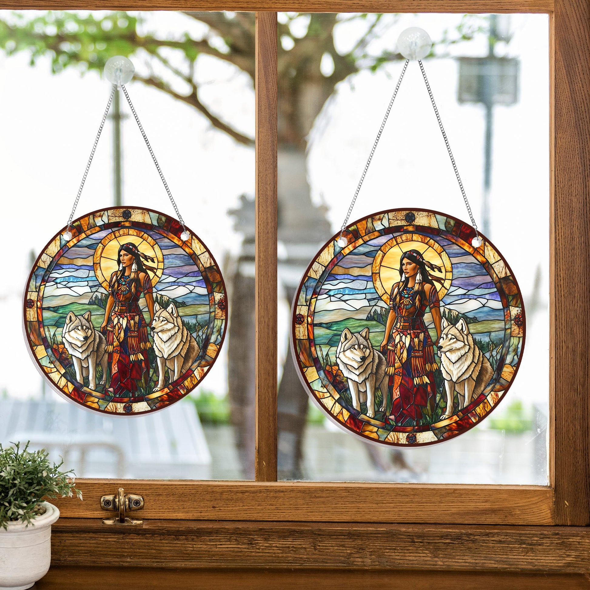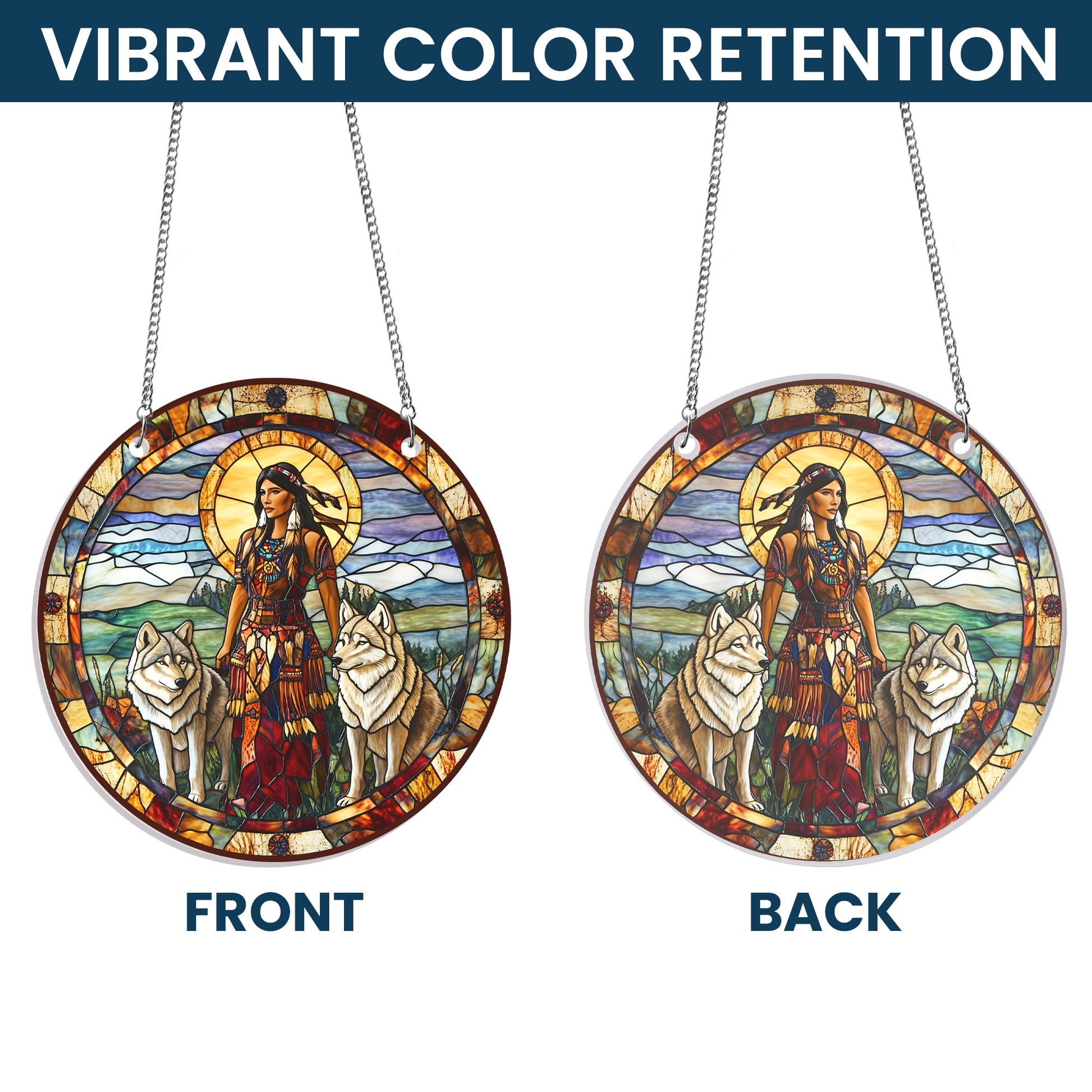 Native American Wolf Suncatcher Acrylic Hanging Sign TQN4674AS