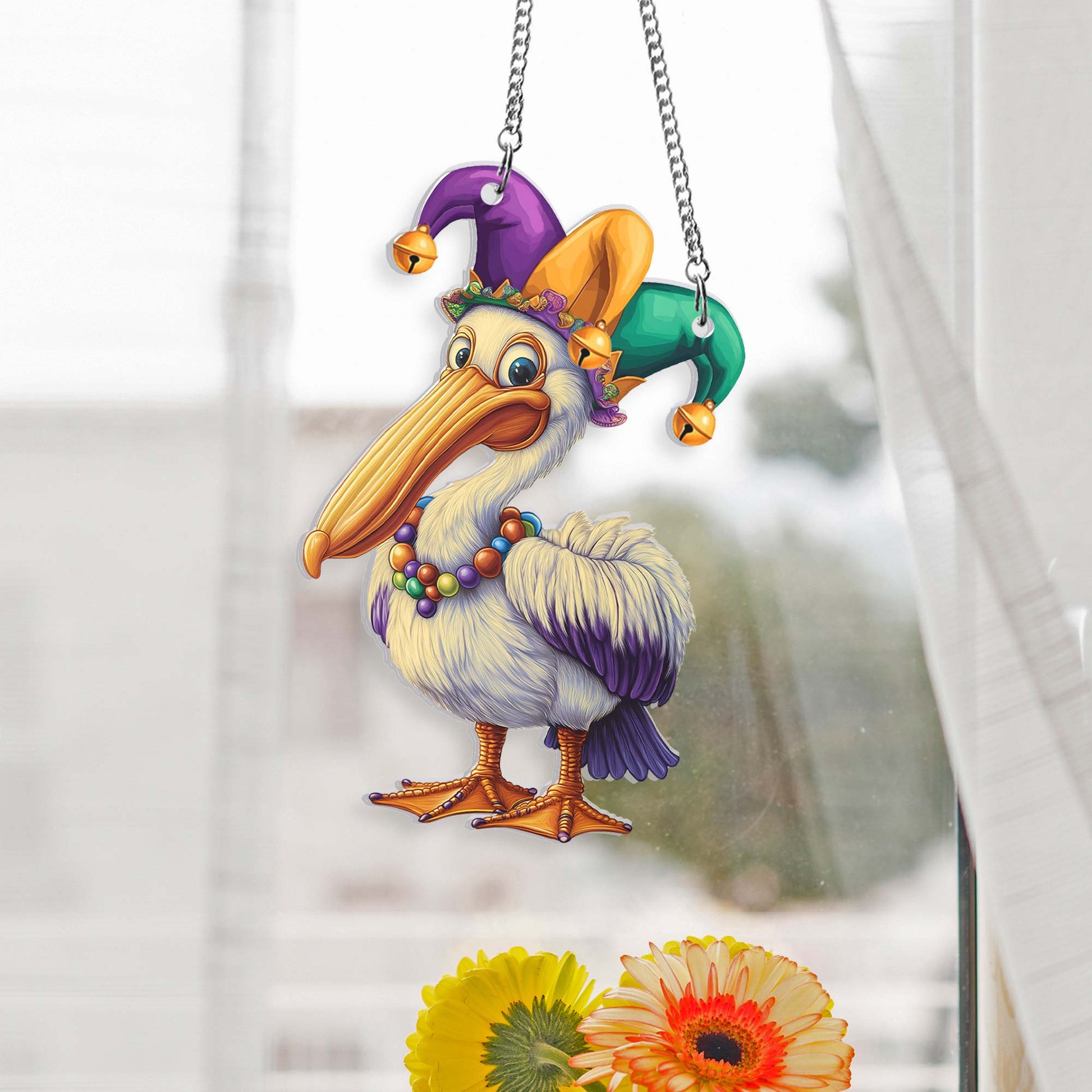 Pelican Mardi Gras Suncatcher Acrylic Hanging Sign TQN4665AS