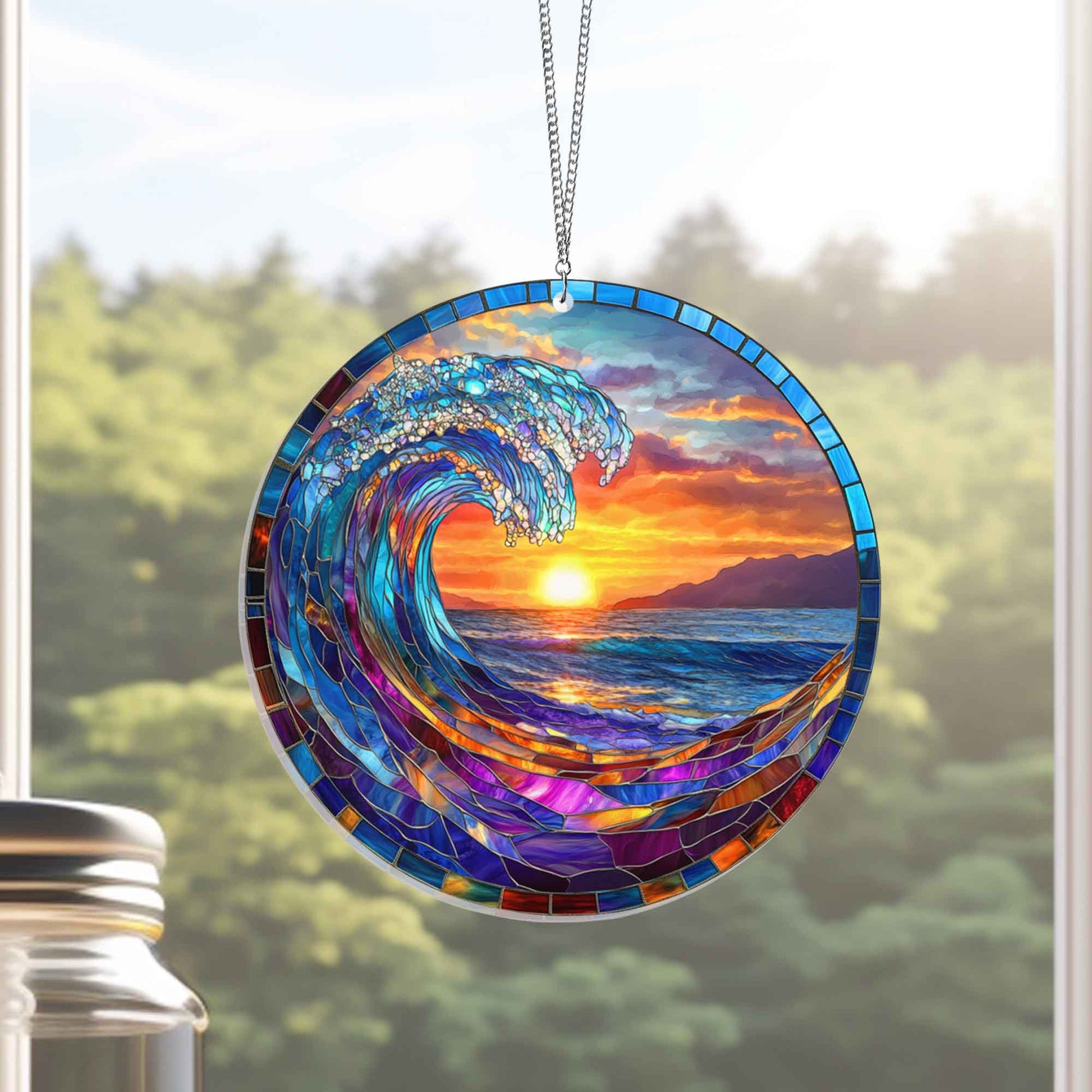 Sea Wave Suncatcher Ocean Beach Acrylic Hanging Sign TQN4456AS