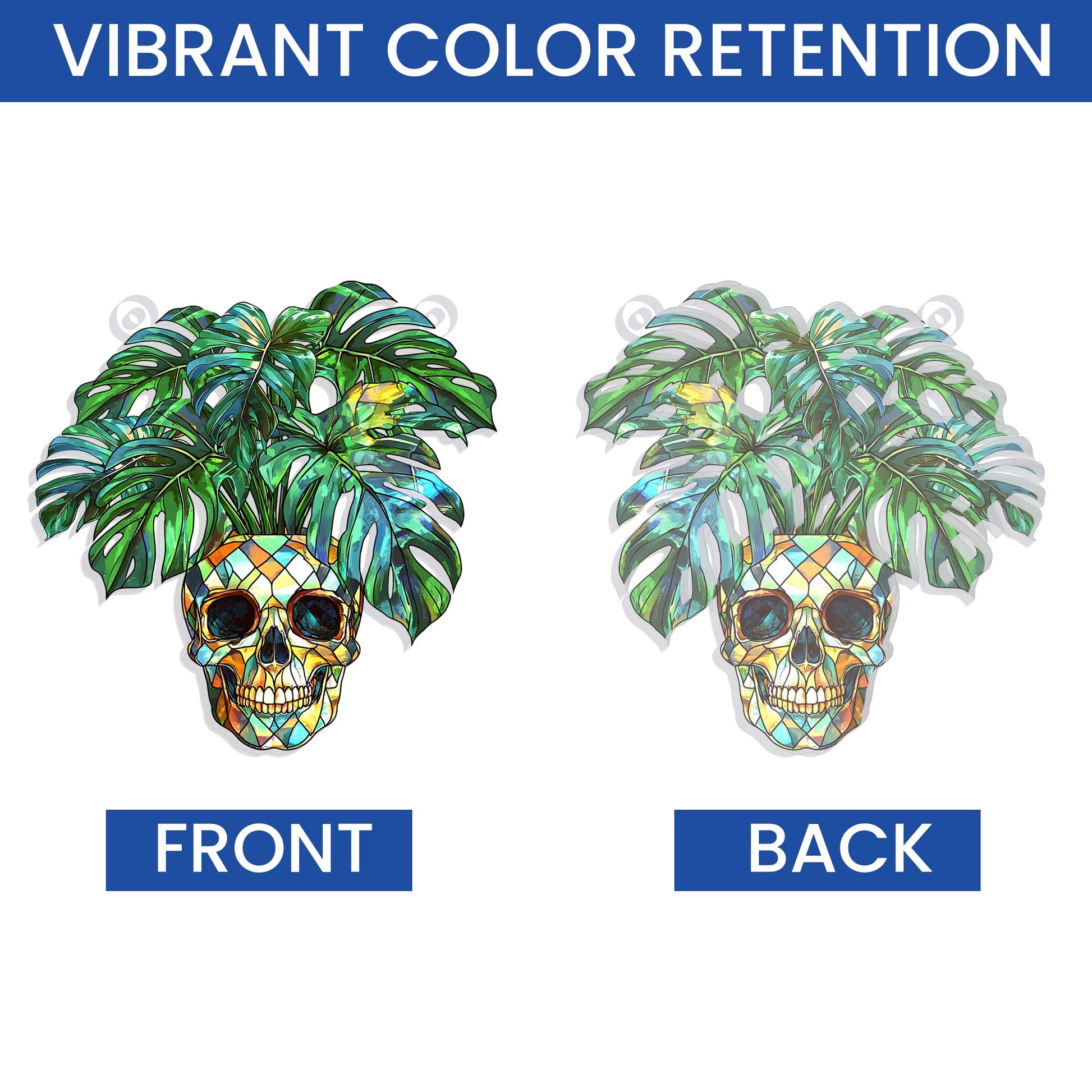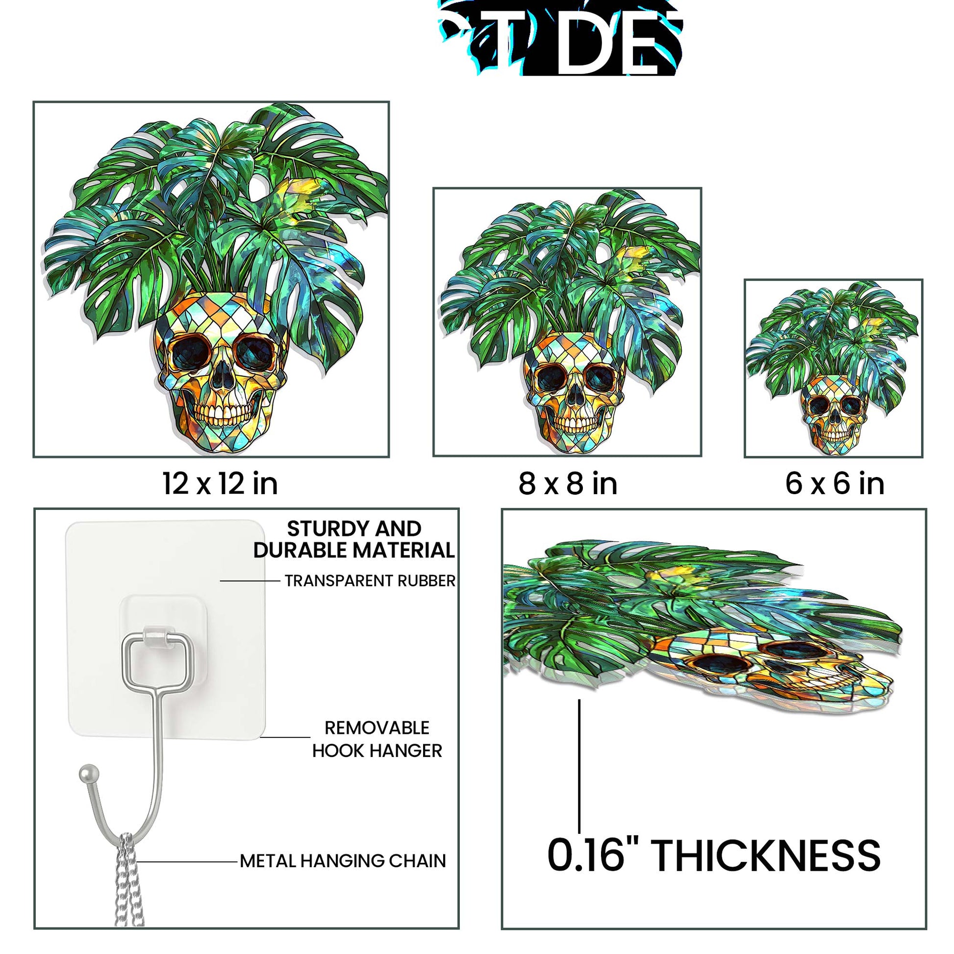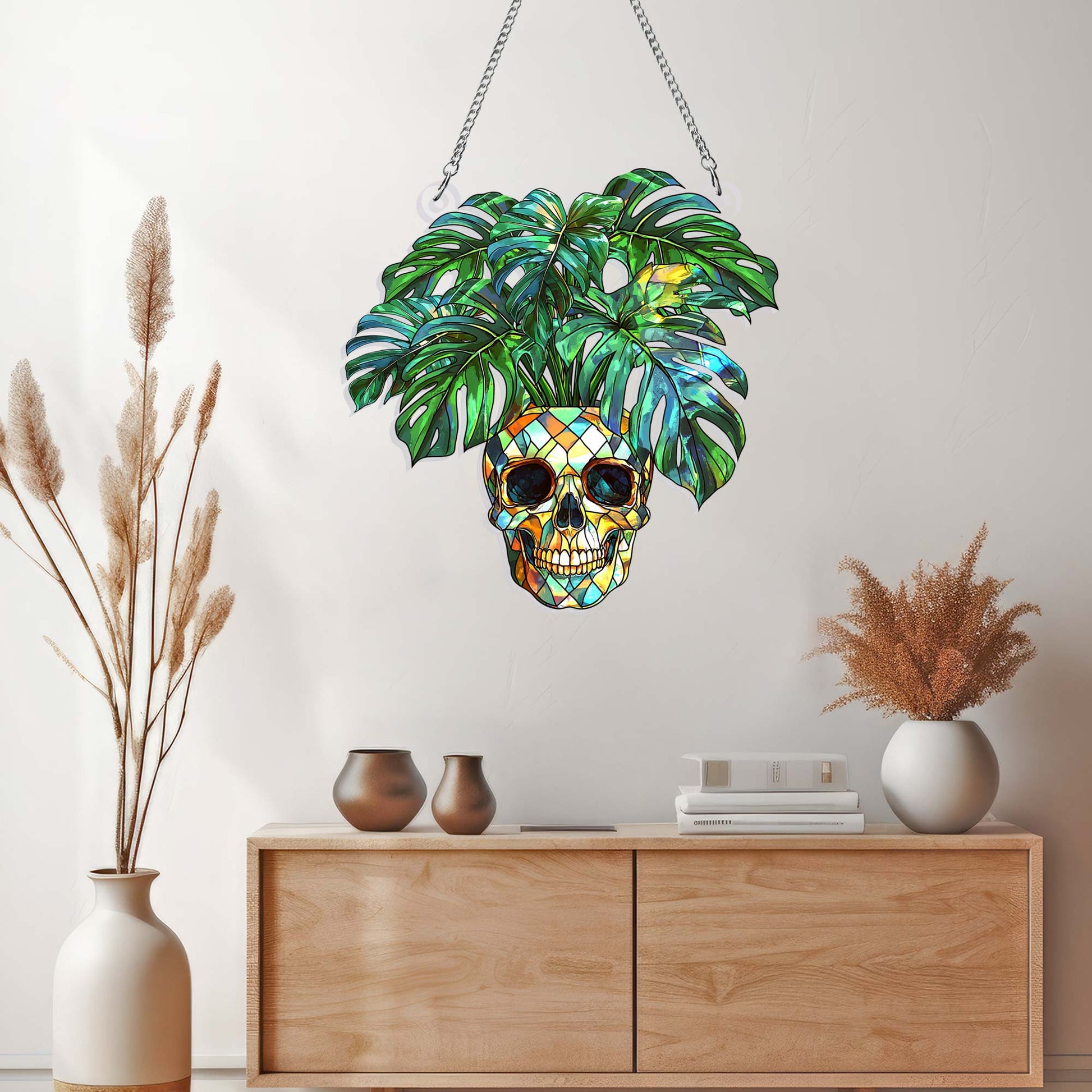 Skull & Monstera Acrylic Suncatcher - Halloween Ghost Hangings for Plant Lovers