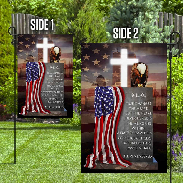 911 Flag The Heart Never Forgets The Memories Within Patriot Day 9/11 Flag MBH65F